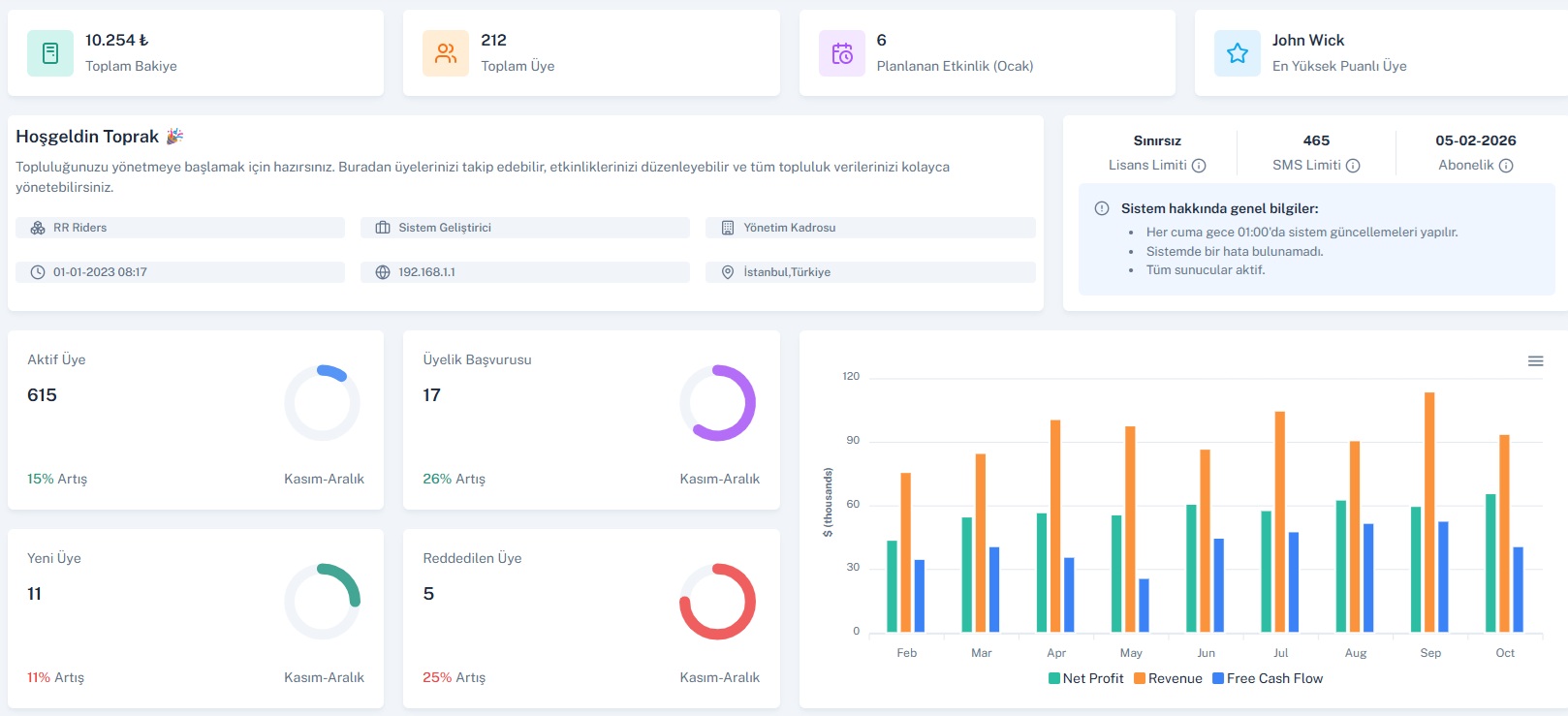 İşlerini hızlandır, etkinlikleri ve finansal durumunu kontrol altında tut ve üyelerinin yönetimini kolaylaştır. Her an her yerden, herhangi bir cihaz ile tek bir dokunuşla topluluğunun ihtiyaçlarına cevap ver. Zaman kaybetmeden topluluğunu yönet!