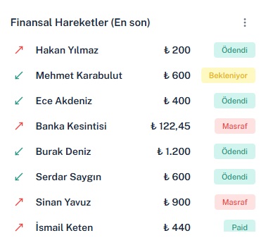 Aidat, bağış gibi gelirlerinizi ve giderlerinizi kolayca ekleyin, finansal yönetimi basitleştirin.